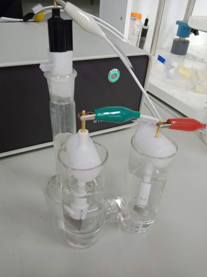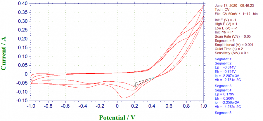 求教各位前辈: 1.碳负载的金属材料在负电位(-1~0V)可以冲电,但冲放电只有十几秒,在正电位下0.3V后就充不上了,强制充电后泡沫镍变色,做了几种金属,参照文献XRD表征都是正确的,都不能充电,扫了-1~1V的CV,也不知道怎么看。 测试条件:6M KOH,三电极体系,参比电极:Hg/HgO,对电极:铂片,测试方法:辰华760E工作站CP-Chronopotentiometry方法,电解池不知道对不对? 2.测试时铂片电极冒泡正常吗?电压范围从来没超过水分解电压啊,多孔碳材料充电范围-1~0V时,铂片也有气泡。 3.每次测试压在两块泡沫镍中间的材料都要掉,用的粘接剂是聚四氟乙烯微粉5um,压片的时候就觉得没有粘成片,文献上看别人的颗粒材料压成片后还能裁剪,我压的一碰就碎,压片压力低的时候不成片,所以我用的压力较大每次都是>20MPa需要用专门的压片机吗?所用压片机如下 -1~1V的CV曲线.png 所用电解池.jpg 金属材料的负电位下充电.png 所用压片机.jpg 金属材料正电位下的充放电.png@VIMPILE |