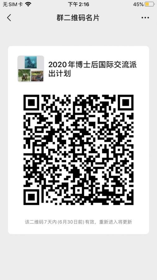 求问,有木有2020年博士后国际交流派出计划的交流微信群 [ 来自版块群 北美公派 ] |