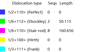 建的镁单晶模型,经由lammps拉伸运算后在ovito中进行后视,为什么位错显示的是1/2<110>\1/6<112>\1/6<110>这样子的?密排六方不是应该是1/2<11-20>\1/6<11-22>这种类型吗? QQ截图20200623151103.png |