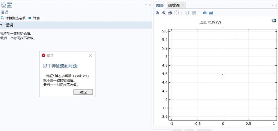 | 请问各位大佬,我用comsol做锂电池放点模拟,然而软件提示我找不到一致的初始值(我已经把正极的锂浓度从0试到最大了),请问我该怎么办? |