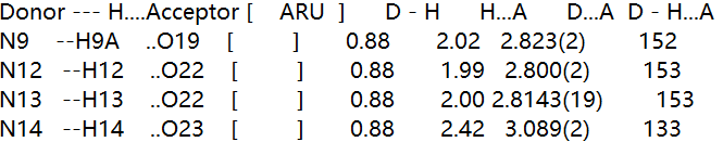 platon计算氢键后,得出的信息。D...A距离有些是四位有效数字,有些是五位有效数字。请问,这是为什么呢?填写氢键信息表格的时候,是四位有效数字的氢键信息,就填写四位,五位就填写五位吗? QQ图片20200626120008.png |