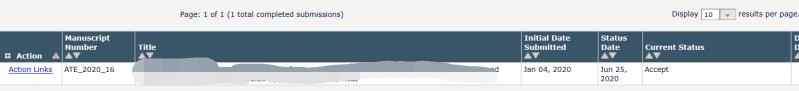 1月4号投稿ATE,历经两次修改,终于接收,第一篇sci论文,太不容易了。开心