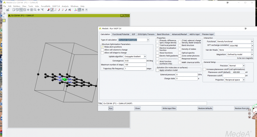 之前用VASP编译之后加上optcell之后结构优化时真空层就不变了,但是medea里面基本是只能ISIF=2/3,不知道有没有老师用过啊?怎么在ISIF=3时让真空层不变呢。。。谢谢 微信截图_20200626133532.png |
