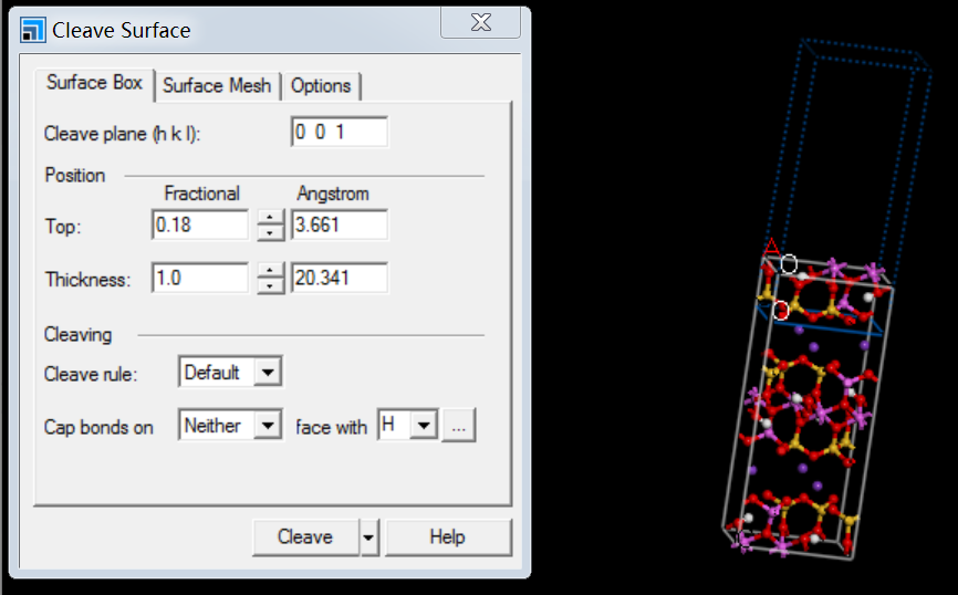 MS切白云母001面,切至K+离子层,但是怎么调整到表面为K+离子层?