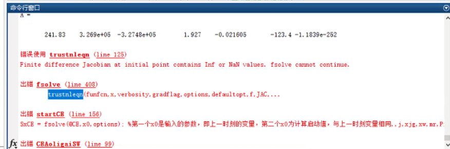 请问可以帮忙看一下吗 我昨天把方程系数做成了全局变量 然后可以算了 但是还是有三部分的方程组的未知数的值在计算中没有变化 最后出现了这个报错 说是初始点存在INF或NAN 我不太清楚初始点是哪里 ![]() 非常感谢 ![]() 微信截图_20200629170249.png |