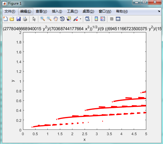 初学MATLAB,要实现文献中的色散曲线图,方程推导出来是这样的,想画出文献图中的绿色虚线,k'对应方程的x,w'是y。但是直接用ezplot画出来的是图三,和文献完全对不上。还请大神们不吝赐教。 发自小木虫IOS客户端 |