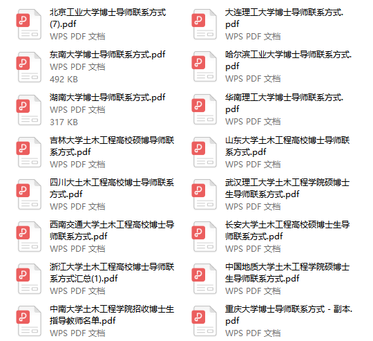 近期,许多高校陆续公示硕博预录取名单,许多小伙伴们喜出望外之余,也将面临选择导师的难题。 小编专门为大家整理了关于水利土建高校的博导系列资料包:硕博导师名单汇总、学科院校链接、招生目录 以下是详细内容介绍: (图仅为土木工程前十所高校,完整版参与活动领取) 根据教育部学位与研究生教育发展中心公布的全国第四轮水利工程、土木工程学科评估学科排名整理的20所高校,近1000个硕博导师的名单详细汇总,涵盖邮箱、研究方向、论文获奖情况、科研成果。 水利工程方向 土木工程方向 (图仅为土木工程前十所高校,完整版参与活动领取) 此表格是根据教育部学位与研究生教育发展中心公布的全国第四轮水利工程、土木工程学科评估排名前40结果整理的,可以一键点击直接进入专业学院官网了解更多信息,便于查询学院概况、最新公告通知等 (图为罗列的部分高校,完整版参与活动领取) 招生目录汇总涵盖了水利与土木两个学科共50所高校的招生目录汇总。目录里涵盖了招生学院的基本信息、院所系联系方式、招生导师名单以及招生人数等情况。 长按下方二维码 回复关键词【名录】立即参与活动 以上所有资料包参与活动即可领取! 特别说明: 1.本文全部内容由水利土建观察家小编手动整理,数量较大,如若有错误敬请大家多多包涵与谅解! 2.实际以高校官网的信息公布情况为准,名录内主要以高校官网、高校院官网、高校研究生院官网以及高校研究生招生信息网为搜集的数据源; 3.本次名录排序也是按照全国第四轮学科评估标准进行排序,相关数据可查看全国第四轮水利工程、土木工程学科评估。 4.如需了解其他的高校导师情况,请关注公众号:水利土建观察家,后台回复您想要了解:高校+专业+硕博导师,小编为您提供搜集到的高校官网信息。 |