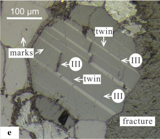 如下图,分别是大理岩厚样品反射光下的双晶(a)与薄片透射光的双晶图片(b)(非同一样品)。其中的双晶纹是不是就是另外一个晶粒在剖面上的显示?双晶纹宽度越大,表示剖面切割到的另外一个晶粒的面积越大?