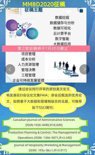2020年已经过去一半,疫情也终将过去,不忘过去放眼未来,FSDM2020第四轮征稿开始啦,如有意发EI会议论文集或通过FSDM会议推荐相关期刊的老师和同学,争取于8月31日前在线投稿到FSDM2020,期待11月中旬在厦门与大家相聚于FSDM2020;同时,在不确定性的全球疫情下,如因疫情等原因不能亲临厦门参会的话欢迎提交视频报告进行交流,参与在线研讨会票选最佳报告~