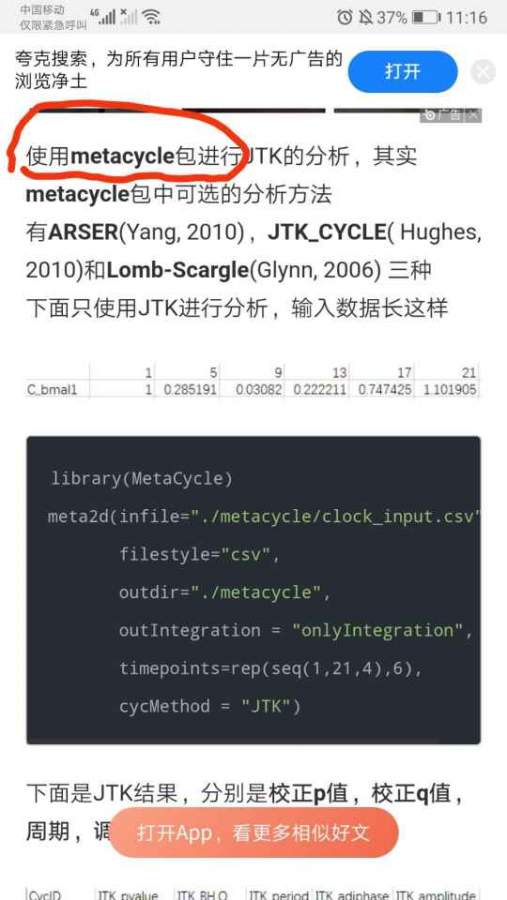 请问有人会JTK-CYCLE算法(研究昼夜节律代谢组学的一种广泛方法)的么?有偿 发自小木虫Android客户端 |