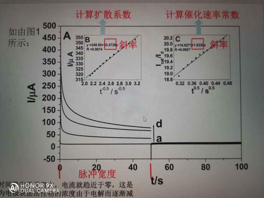 计时电流法中计算催化速率常数中被测物质的催化电流和极限电流达到稳态的基态电流是什么意思呀,求助,还有就是这个图要扣除裸电极的吗 发自小木虫Android客户端 |