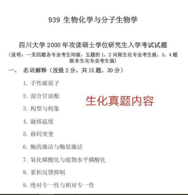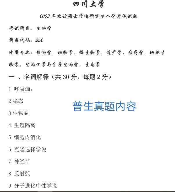 四川大学生物学考研真题及答案低价转让
