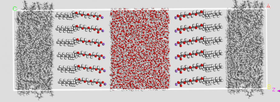 请问一下,我在建模的时候,表面活性剂头基的反离子应该放在什么位置?我放在头基附近就会产生静电屏蔽,放在水里面,阳离子表面活性剂就往油里面跑,这么咋办。图一的放在头基附近,图二是放在水里面,的模拟结果。 O4Z}JZT`Z)G(X{KQZ5RTX3J.png @ZC}U37CJI$AV2IWZH%8O@0.png |