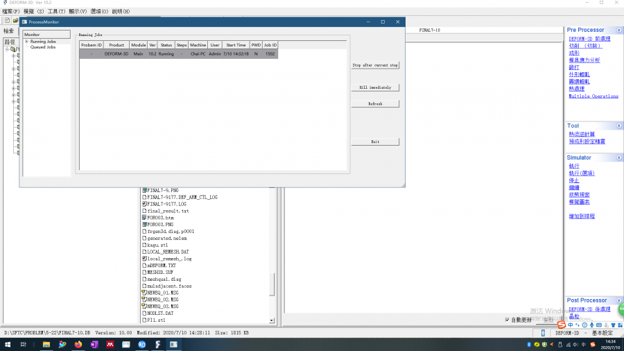 现在又重装了一遍,文件名前面有RUNIING标志了,但是还是没有计算信息。