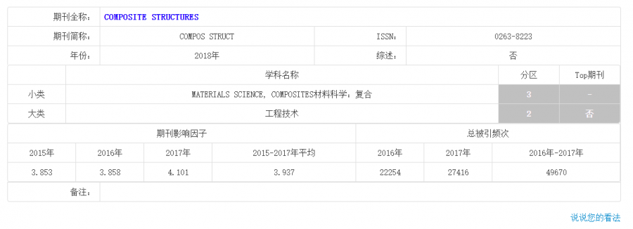 composite structure在2018年时中科院的小类分区,属于几区?已有3人参与