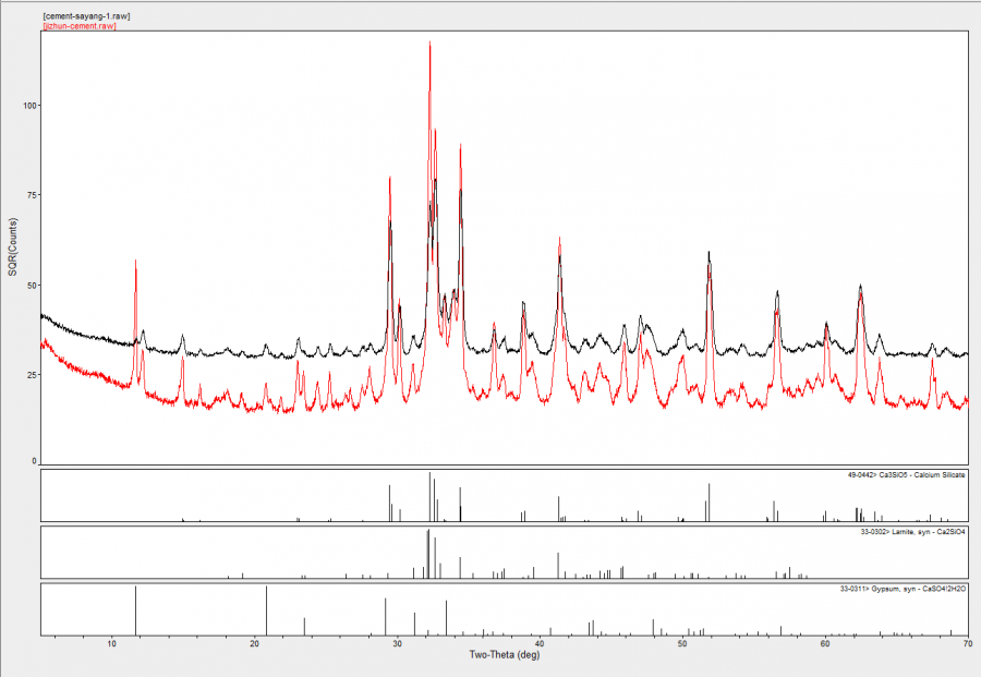 水泥中含有多种物相,包括硅酸三钙、硅酸二钙和石膏等。这些物相很容易产生择优取向,使衍射峰强度与理论强度有偏差,当采用RIR法、全谱拟合法和rietveld定量分析时,降低定量分析的精确度。为了减弱择优取向,采用撒样法进行制样。获得了非常好的效果。 1.png |