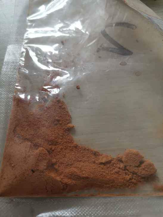 手里有一个红棕色细胞染色剂样品,如图所示,可以溶于水,水溶液是浅红色的,这个染色剂是和一种白色粉末配合使用,经过化学分析,白色粉末主要是纤维素和碳酸氢钠,有没有懂染料的大神告诉一下图中的红棕色粉末有可能是什么。