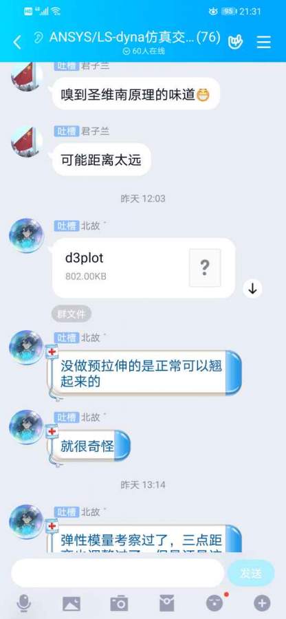 Ansys/lsdyna交流分享群,分享给大家,群文件有丰富学习资料供初学者学习,包括静力学,动力学,多物理场仿真,流固耦合,热结构耦合等,涵盖铸造,锻造,焊接等多个事例 发自小木虫Android客户端 |