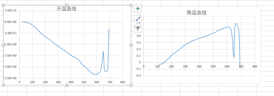 图中材料为铝7系合金,粒径非常小,exo方向朝下。理论熔点应该处于500-600度之间。 如图升温到700度还没有吸热峰,但是降温过程有吸热峰。 请问有合理的解释么? 升温和降温.PNG 升温和降温.PNG |