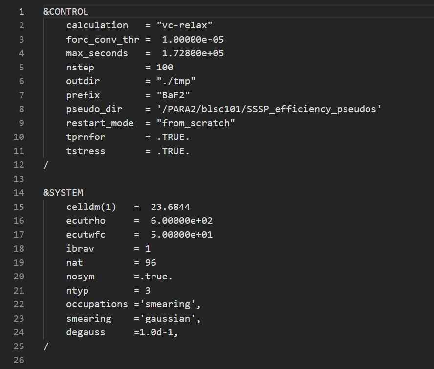 最近在练习计算2*2*2的baf2超胞(96个原子),在超算上用2个节点,每个节点24核算了12个多小时还没算完vc-relax,想问问大家一般像这种96个原子的模型48个核计算大概要多久呀?怎么才能提高计算速度呢?下面附上我的输入文件 发自小木虫Android客户端 |