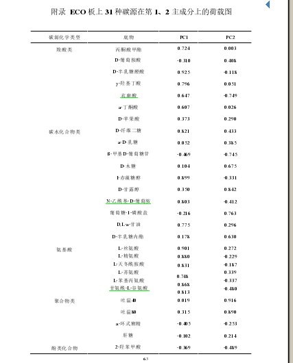 31种碳源主成分分析图中,怎么知道哪种碳源最影响微生物