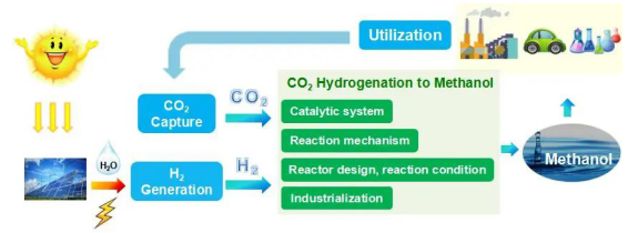 原文链接:https://mp.weixin.qq.com/s/3V8RuUJ6hHuxyzFb8tFatA 其他用户平台可直接微信搜索关注“科学温故社” co2排放导致温室效应,引发了全球关注。将co2视作碳源,利用可再生能源电解水制氢,与捕集的co2反应合成甲醇,可有效缓和温室效应;甲醇除可充当绿色液体燃料外,亦可作为工业原料生产其他高附加值化学品和燃料,利于缓解化石能源短缺。同时,甲醇可充当绿氢载体,利于解决氢能储运过程的安全难题。co2加氢制甲醇符合绿色碳科学原则,是碳捕集与资源化利用的重要方向,为低碳清洁的能源革命提供了创新的技术路线。 fig. 1 (左) carbon dioxide recycling in the methanol economy. (右) beyond oil and gas: the methanol economy. 20世纪90年代,诺贝尔化学奖获得者、南加州大学george a. olah教授开始提倡甲醇经济,即使用甲醇代替化石资源用作能量存储、燃料、以及碳氢化合物合成的基础原料。2006年,george a. olah教授等人合著了beyond oil and gas: the methanol economy专著,阐述了在后油气时代将甲醇作为化石资源替代品以及循环使用二氧化碳进行绿色甲醇生产的可行性。 fig. 2 (左) powering the future with liquid sunshine. (右) liquid sunshine roadmap. 2018年,施春风院士、张涛院士、李静海院士、白春礼院士在《joule》上联合发文提出了“液态阳光”(liquid sunshine)的战略构想。“液态阳光”来源于太阳能、二氧化碳和水,属于可再生绿色燃料。该文对“液态阳光”战略进行了详细阐述,提出了从化石燃料能源系统(fossilized sunshine)向混合系统(hybrid systems)过渡以及最终到绿色醇类燃料能源系统(liquid sunshine)转型的具体步骤。 二氧化碳加氢变甲醇,绿色低碳新时代!以下笔者将和大家一道浏览co2加氢以及co2催化转化领域的顶刊综述。 2020年,大连理工大学宋春山、郭新闻教授团队与哥伦比亚大学陈经广教授等人全面综述了过渡金属(cu基、贵金属pd/pt基)及氧化物(zno基固溶体)体系、主族金属(ga基金属间化合物)及氧化物(in2o3、原子级分散pd掺杂的in2o3)体系、mof/zif衍生体系等催化剂体系在co2加氢合成甲醇反应中的应用。对于经典的cu基催化体系,该论文重点讨论反应条件下活性位点的演化,对比评价了cu表面积不同定量方法,同时全面阐述了助剂、载体、前驱体、制备方法等因素对反应性能的影响。对于新兴的mof/zif衍生体系,该论文总结了自下而上、自上而下不同的制备方法。此外,该论文总结了不同催化体系反应中间体和反应路径(hcoo*/cooh*途径)以及相关的动力学研究。该论文最后对co2加氢制甲醇的未来方向做出了展望。 fig. 3 (左) catalytic systems. (右) catalyst structure, active sites and practical applications. 2020年,大连化物所黄延强研究员、张涛院士团队全面综述了cu基、贵金属基(pd基、au基)、双金属基(合金、金属间化合物)、氧化物(in2o3)及复合氧化物(in2o3/zro2,zno-zro2固溶体....)等催化剂体系在co2加氢制甲醇中的应用。该论文详细讨论了活性中心的争议(cu-氧化物/碳化物界面、氢溢流模型、异质结模型....),具体阐述了co2高效活化和甲醇选择性生成的重要调控策略机制,重点分析了载体(可还原/不可还原金属氧化物...)、助剂(金属氧化物、贵金属...)、制备方法、前驱体等对cu基催化剂体系催化性能的影响。该论文同时涵盖了反应机理(hcoo*/cooh*/ rwgs + co加氢路径.....)的深入理解,总结了反应条件及优化(液相甲醇合成工艺...)、反应器设计及创新(膜反应器...),以及世界范围(lurgi、mitsui、cri、camere、中国及欧盟的工业化进展...)的工业化应用。最后,该论文对co2加氢制甲醇的当前挑战和未来发展方向做出了深入思考和前瞻性展望(高活性、选择性、稳定性催化剂的开发,原位条件下活性中心、反应中间体的观测,新型反应器的设计创新....)。 fig. 4 heterogeneous hydrogenation of co2 to methanol. fig. 5 proposed reaction mechanisms for methanol synthesis from co2 hydrogenation. 2020年,新加坡国立大学javier pérez-ramírez、sibudjing kawi,天津大学巩金龙,加州大学戴维斯分校bruce c. gates等人综述了核-壳结构催化剂在热/光/电催化co2转化的研究进展。该论文首先从组成(无机材料、有机材料、有机-无机复合材料)、形貌(单层/多层、蛋黄型/中空型、三明治型)等方面对核壳结构催化剂进行了系统的分类,继而具体阐述了核壳结构催化剂在co热/光/电催化转化的优势(抑制催化剂颗粒的烧结;多功能组分的复合;双功能的协同;电子性质的调变;界面的形成),再进一步总结了核壳结构催化剂在co2转化中的应用:(1)甲烷co2重整为合成气;(2)co2热催化加氢为甲醇、c2+碳氢化合物、甲烷;(3)co2光催化加氢为co、甲烷、甲醇;(4)co2电催化还原为co、甲醇、甲烷、甲酸、c2+碳氢化合物。该论文对比了核壳结构催化剂相较于负载型催化剂的优势(热稳定性、两相界面的最大化、高度结构均一性),指出了核壳结构催化剂中活性位点为壳层部分覆盖、壳层在反应物/产物扩散中的限制等的局限性,以及核壳结构催化剂在简化制备流程、降低制备成本、大规模放大等方面面临的挑战。与此同时,该论文明确指出了以下几个重要方面:(1)定量阐述核壳结构催化剂传质性质;(2)利用原位技术(x射线吸收谱xas,近常压xps...)表征反应历程中核壳结构催化剂结构变化(形貌、晶相...);(3)核壳结构催化剂在co2催化转化中影响选择性、活性、稳定性的作用机制,模型催化剂、dft理论计算在理解反应机理、活性位点