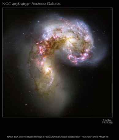 如图,从b站“你生日那天的宇宙”里截的自己生日当天的图。 自己百度了一下,说这张图是“相互碰撞的触角星系”,“触角”是相互撞击的结果。 我不懂天文学,很想问一下这个“触角”是图片里哪个部分呀? (自己觉得这个图看起来好像冲出来的异形哦,哈哈) 求大佬解答,感谢 (我还是新人,基本没金币,不能散金币求助,不好意思呀) 发自小木虫Android客户端 |