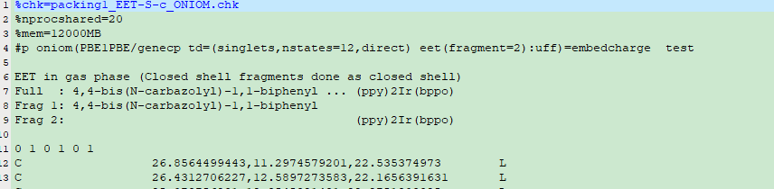 算能量转移,输入文件中oniom和EET关键词怎么写?