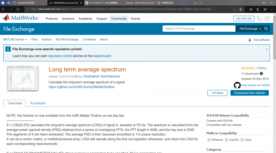 在mathworks上搜索long term average spectrum能看见这个文件,但是我的网在这个网页上 之后加载不出来了,似乎需要去github里下载,有谁能帮我下载一份吗? 458751784@qq.com 谢谢! 123.png |