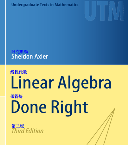 Linear Algebra Done Right 线性代数应该这样学 Author: Sheldon Axler 下载地址:https://www.zhisci.com/pdfshow/17753 This best-selling textbook for a second course in linear algebra is aimed at undergrad math majors and graduate students. The novel approach taken here banishes determinants to the end of the book. The text focuses on the central goal of linear algebra: understanding the structure of linear operators on finite-dimensional vector spaces. The author has taken unusual care to motivate concepts and to simplify proofs. A variety of interesting exercises in each chapter helps students understand and manipulate the objects of linear algebra. 这本最畅销的线性代数第二课程教材是针对本科生数学专业和研究生。这里采用的新颖方法将决定因素排除在本书末尾。本文着重于线性代数的中心目标:理解有限维向量空间上线性算子的结构。作者特别注意激发概念和简化证明。每章都有各种有趣的练习,帮助学生理解和操作线性代数的对象。 The third edition contains major improvements and revisions throughout the book. More than 300 new exercises have been added since the previous edition. Many new examples have been added to illustrate the key ideas of linear algebra. New topics covered in the book include product spaces, quotient spaces, and dual spaces. Beautiful new formatting creates pages with an unusually pleasant appearance in both print and electronic versions. 第三版包含了整本书的主要改进和修订。自上一版本以来,增加了300多个新的练习。增加了许多新的例子来说明线性代数的关键思想。书中涉及的新主题包括乘积空间、商空间和对偶空间。漂亮的新格式创建的页面在打印版和电子版中都有异常令人愉快的外观。 No prerequisites are assumed other than the usual demand for suitable mathematical maturity. Thus the text starts by discussing vector spaces, linear independence, span, basis, and dimension. The book then deals with linear maps, eigenvalues, and eigenvectors. Inner-product spaces are introduced, leading to the finite-dimensional spectral theorem and its consequences. Generalized eigenvectors are then used to provide insight into the structure of a linear operator. 除了对适当数学成熟度的通常要求外,没有任何先决条件被假定。因此,本文首先讨论向量空间、线性独立性、跨度、基和维数。这本书然后处理线性映射,特征值,和特征向量。引入内积空间,得到有限维谱定理及其结果。然后使用广义特征向量来深入了解线性算子的结构。 |