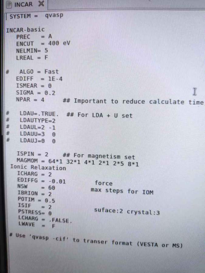 最近做的4*4的WTe2吸附Li2MnSiO4,但是结构优化的很慢,一整天一个离子驰豫都没算完,大神们有什么解决方法吗 发自小木虫Android客户端 |