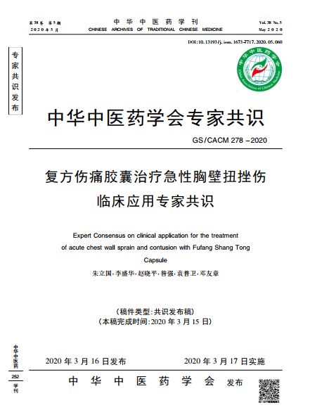 2020.03+复方伤痛胶囊治疗急性胸壁扭挫伤临床应用专家共识