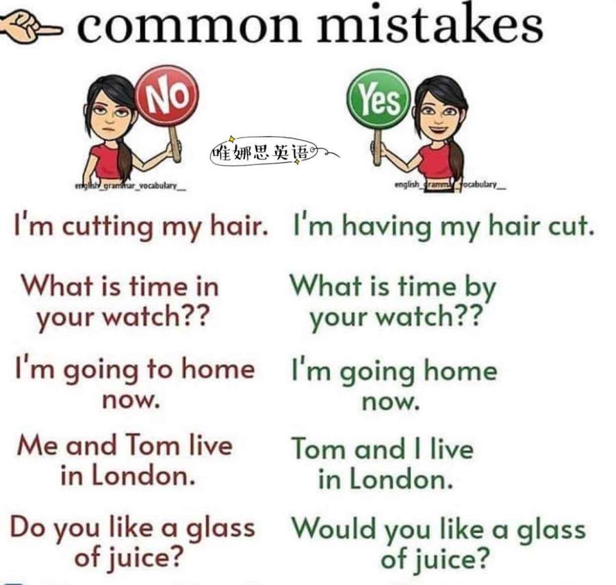 【错题本】 右边正确的句子多读读吧~ 英语天天见,一张图就搞懂 喜欢图说英语,就来关注我吧! —唯娜思英语 发自小木虫Android客户端 |