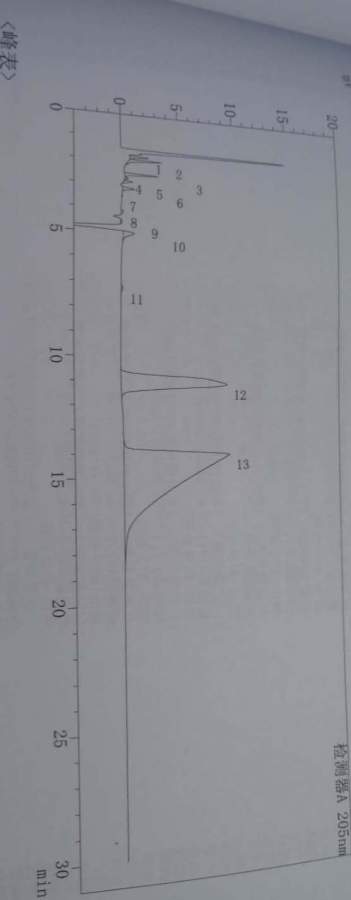 高效液相色谱仪:流动相pH5.6,样品溶液pH9.5,检测波长205nm,出现鬼峰,发现只要样品呈碱性都会出现很大鬼峰(标号13)。样品调酸鬼峰(标号13)消失,谁有一个合理的解释,多谢!同时进样过氨水溶液,也出现鬼峰 微信图片_20200810140951.jpg |