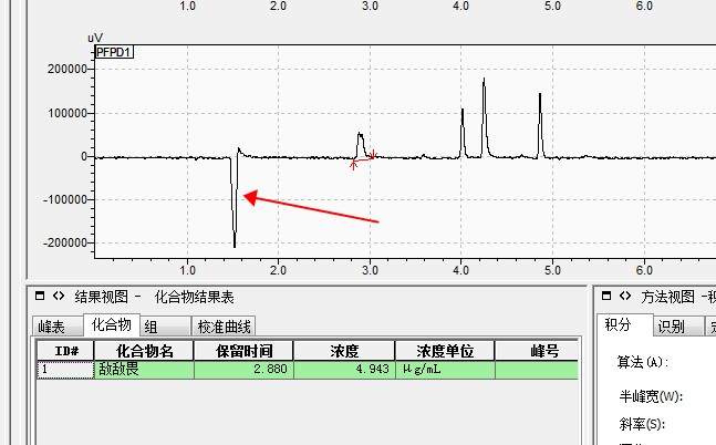 新手求助,用二氯甲烷为溶剂测有机磷农药,溶剂峰为什么是倒的?