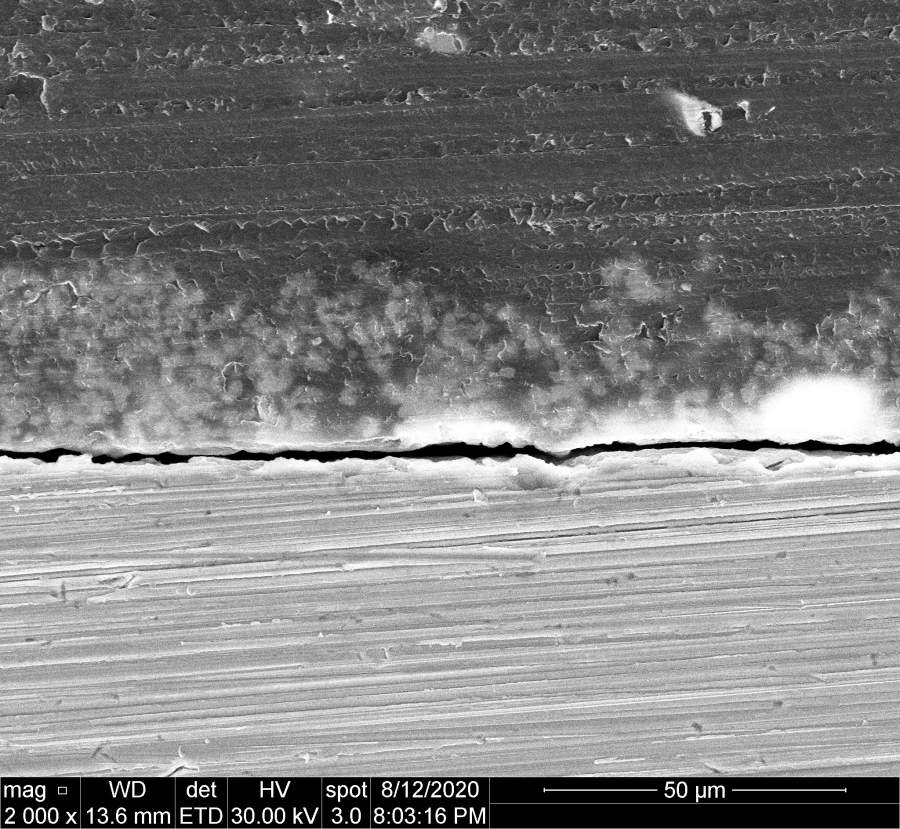 求助各位大神、大牛![]() ,本人是做白铜海水腐蚀的,海水中腐蚀很长时间后表面有很多腐蚀产物,现在想观察腐蚀产物分层情况,就想看试样横截面,但是本人制备了几个观察都失败了,镶嵌后磨抛了几次都不行,都会有大的缝隙,同时腐蚀产物都被树脂沾走了,我采用的是冷镶法,图一是我拍的扫描,图二是别人拍的,求助指导一下!!!!04_001.jpg TIM截图20200817112258.png |