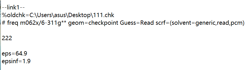 如题所示,想采用真空中优化好的结构继续计算考虑隐式溶剂时的频率等,该如何设置? 如果是库里有的(如甲苯等)可以直接solvent=acetone,但是如果是自定义的溶剂该如何设置呢? 我这样设置直接报错识别不出来,求助大神有没有啥解决办法?还是只能一个GJF一个GJF的算? ![]() 1.png 2.png |