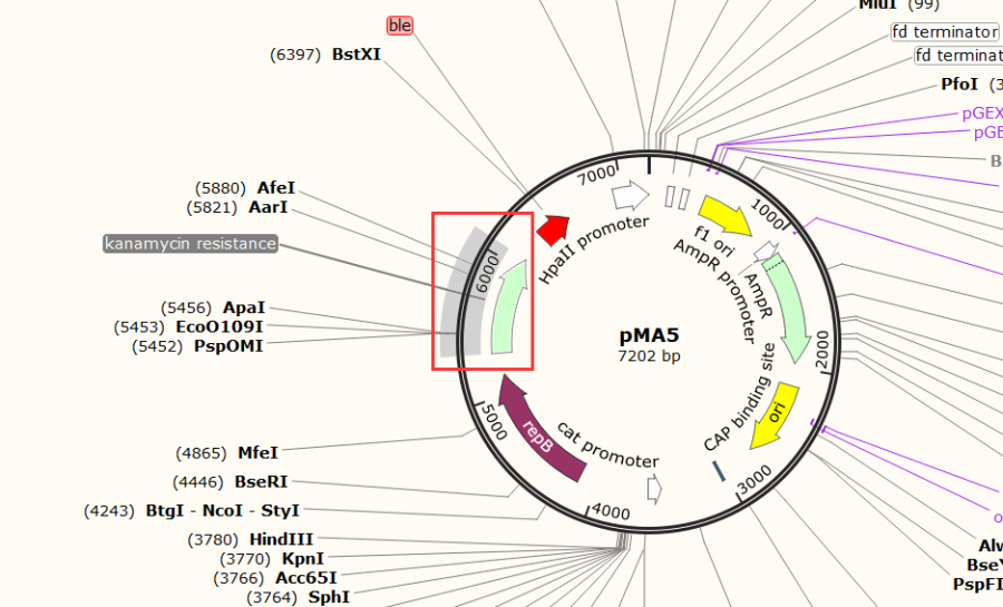 请教一下大家: 1、pMA5质粒的kan基因序列为什么不是以起始密码子开头? 2、该抗性基因上下游的启动子和终止子位于哪里? 3、想p下来这段抗性基因在大肠中表达,会不会因为pMA5是枯草质粒从而表达受影响? 求救急,回答任何一个问题都可以,非常感谢 kan.png kan1.png |