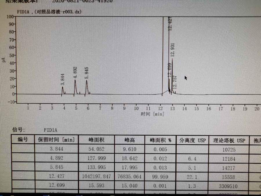 检测甲醇,乙醇,异丙醇,DMF做容剂,直接进样,DB-624 30*0.32*1.8的柱子,50℃维持5min,40℃升至220℃,维持10nin,进样口200℃,检测器250℃。第一张图为第一天进样,第二张图为第二天进样,衬管以及搁垫为新换,峰变形,求指导。 发自小木虫Android客户端 |