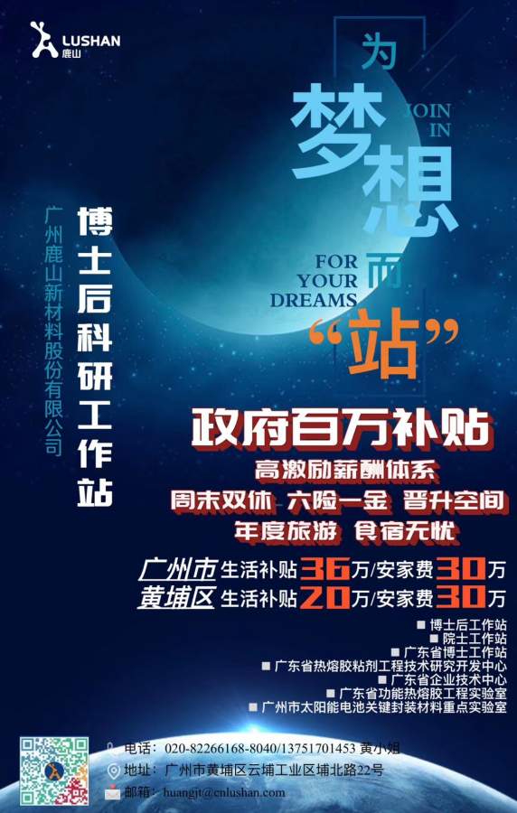政府百万补贴 广州鹿山新材料股份有限公司 2020年博士后工作站人才引进