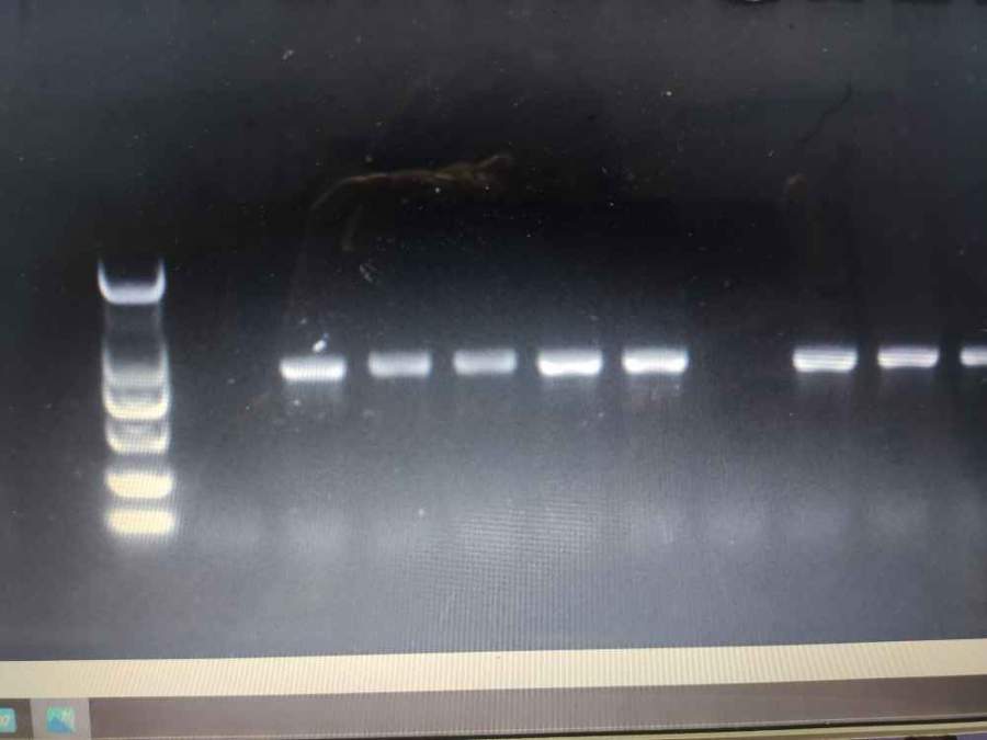 如图所示,目的基因的条带应该在700到750之间,但是我的阳性对照和实验组扩出来的大小一致,但是比750大,快靠近1000了,换了酶和引物,还是一样。求问有什么解决的方法