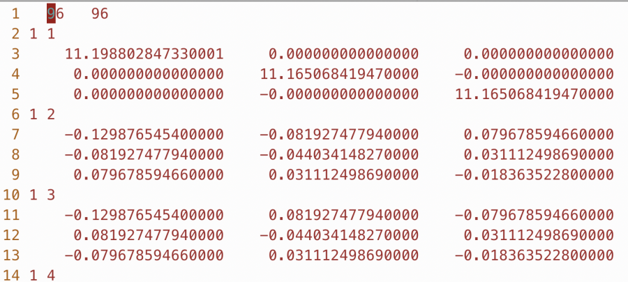 根据重复性,删掉了一些,如果你想得到完整的,加入一个参数。 FULL_FORCE_CONSTANTS FULL_FORCE_CONSTANTS = .TRUE. is used to compute full supercell constants matrix. The default setting is .FALSE.. By .TRUE. or .FALSE., the array shape becomes (n_patom, n_satom, 3, 3) or (n_satom, n_satom, 3, 3), respectively. The detail is found at FORCE_CONSTANTS and force_constants.hdf5. |