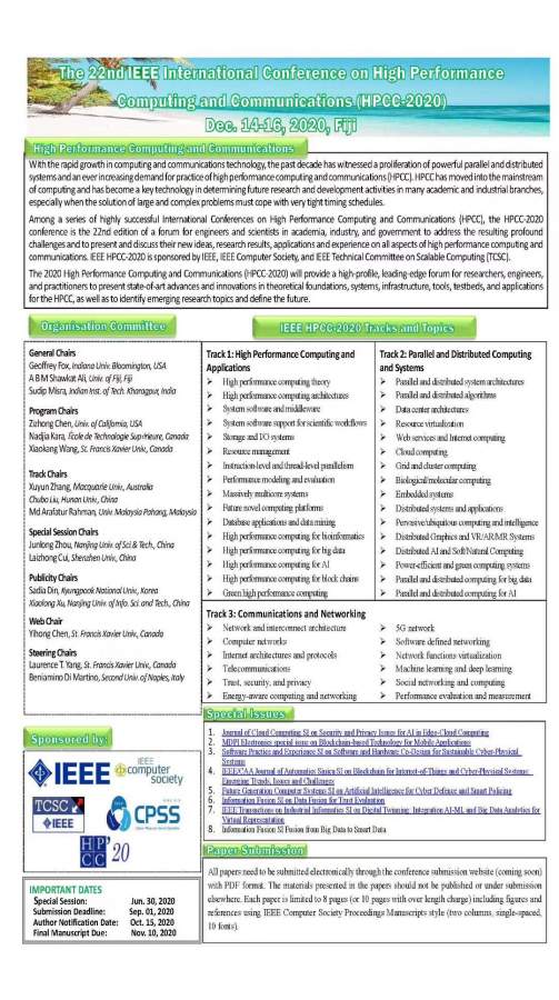征稿CCF C类会议IEEE HPCC 2020已有1人参与