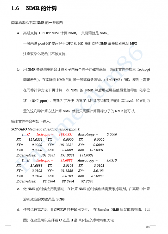 NMR计算的简单介绍可以见我这个教程的1.6节 https://muchong.com/t-14242735-1,截图如下 nmr1.png nmr2.png |