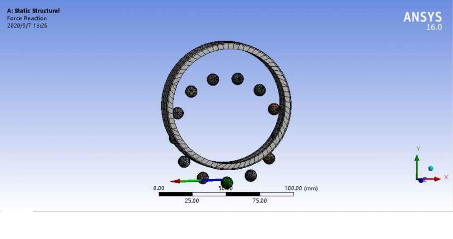 我给外圈添加了全约束,滚动体添加了远程位移约束(remote displacement)用于约束滚动体的轴向转动,内圈下半部分添加了轴承载荷,内圈还添加了一个倾覆力矩,轴承整体添加了一个重力加速度。接触是滚动体为接触面,滚道为目标面,设置的是摩擦接触(frictional),摩擦系数0.02。约束与载荷如图1所示,为什么仿真结果滚动体穿透了轴承外圈呢?仿真结果如图2所示。 @wuming524 发自小木虫Android客户端 |