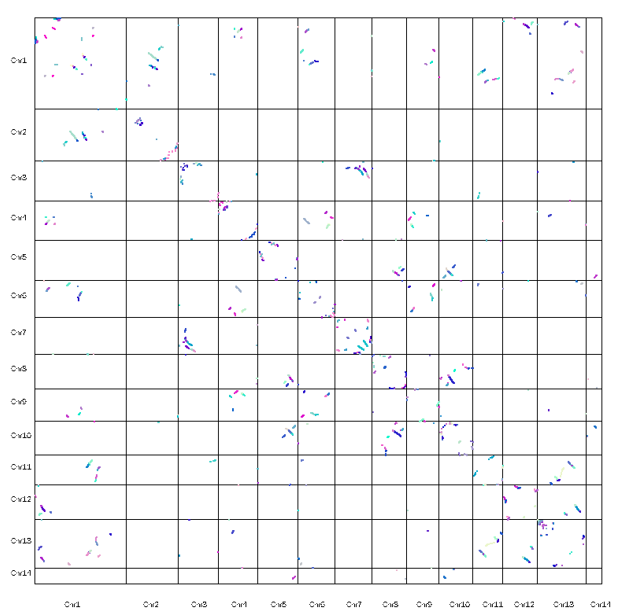 最近要分析一个植物基因组的复制事件,目前做了基因组自身共线性和与葡萄基因组的共线性分析。从自身共线性图上看是经历了二倍化,可是与葡萄的共线性图上看似乎是经历了三倍化。以前没做过真核的基因组,求助各位大神这两个图应该怎么看。拜托了!! 自身共线性.png 与葡萄比较.png |
