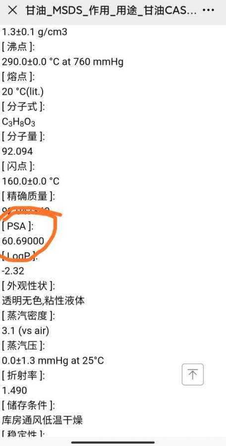 查甘油物理化学性质的时候,看到有个参数是PSA,求大神告知一下,这是什么参数,是哪个英文的缩写? 发自小木虫Android客户端 |