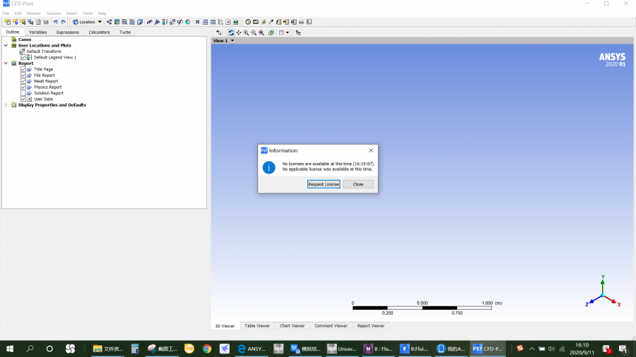 ANSYS workbench 2020R1 后处理出现No lincenses are available at this time?