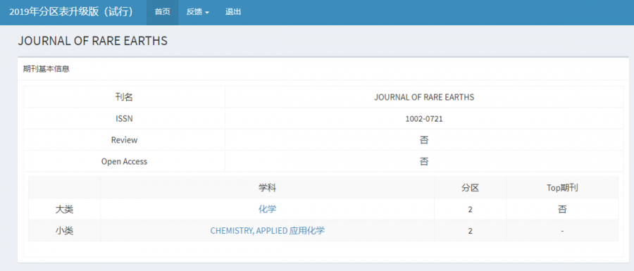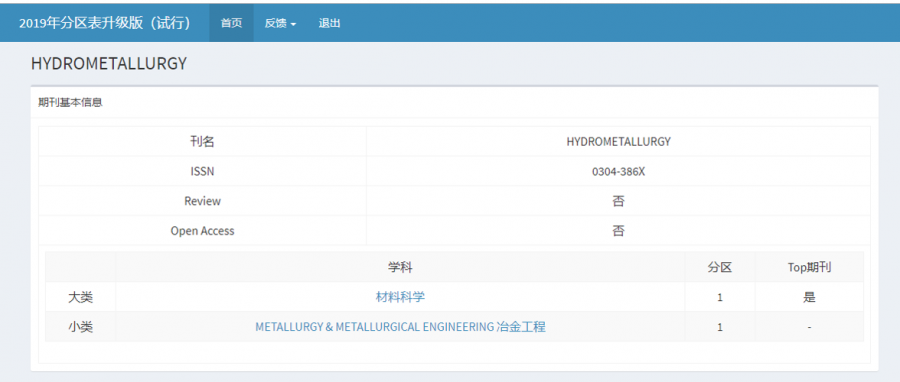 HYDROMETALLURGY 期刊基本信息 刊名 HYDROMETALLURGY ISSN 0304-386X Review 否 Open Access 否 学科 分区 Top期刊 大类 材料科学 是 小类 METALLURGY & METALLURGICAL ENGINEERING 冶金工程 - JOURNAL OF RARE EARTHS 期刊基本信息 刊名 JOURNAL OF RARE EARTHS ISSN 1002-0721 Review 否 Open Access 否 学科 分区 Top期刊 大类 化学 否 小类 CHEMISTRY, APPLIED 应用化学 - JOURNAL OF CLEANER PRODUCTION 期刊基本信息 刊名 JOURNAL OF CLEANER PRODUCTION ISSN 0959-6526 Review 否 Open Access 否 学科 分区 Top期刊 大类 环境科学与生态学 是 小类 GREEN & SUSTAINABLE SCIENCE & TECHNOLOGY 绿色可持续发展技术 - 小类 ENGINEERING, ENVIRONMENTAL 工程:环境 - 小类 ENVIRONMENTAL SCIENCES 环境科学 - |