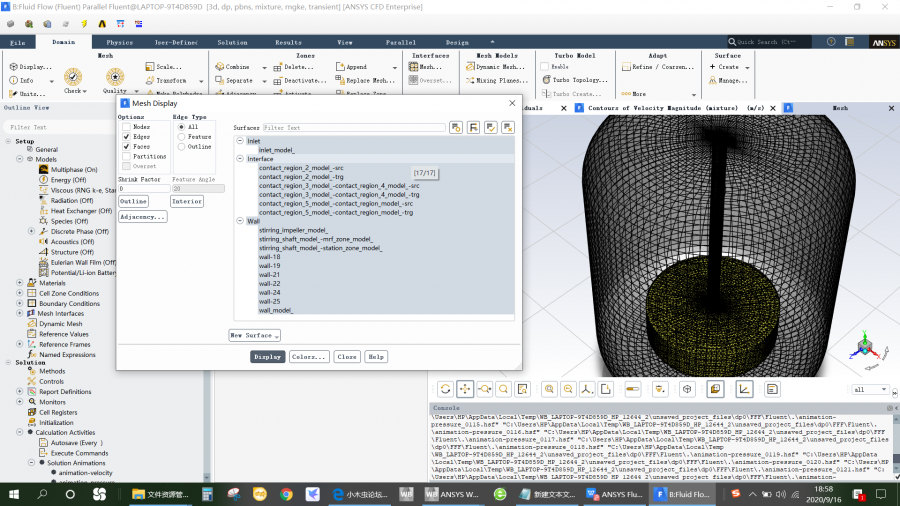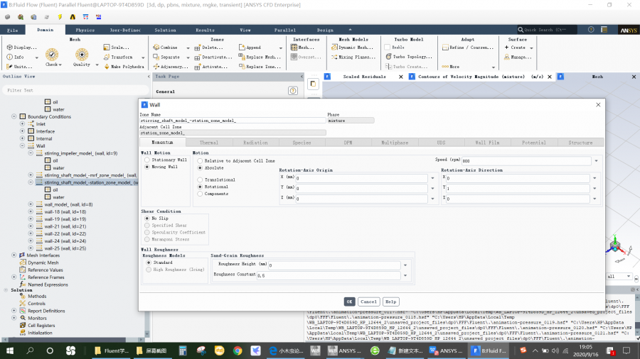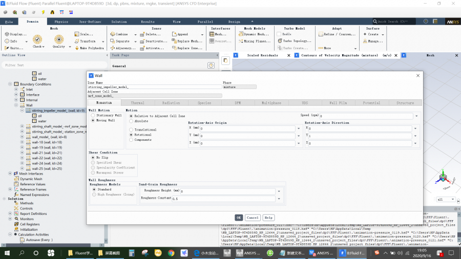 在Animation Define 定义速度云图,将Wall全部选上,计算完成后,搅拌桨没有动,请问这是什么情况呢?求大佬看看。 屏幕截图(192).png 屏幕截图(193).png 屏幕截图(190).png 屏幕截图(191).png 屏幕截图(194).png 屏幕截图(195).png 屏幕截图(196).png 屏幕截图(197).png |